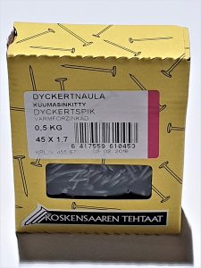 Kuumasinkitty käsin vasaralla lyötävä dyckert-naula mm. paneeleiden ja listojen kiinnitykseen.