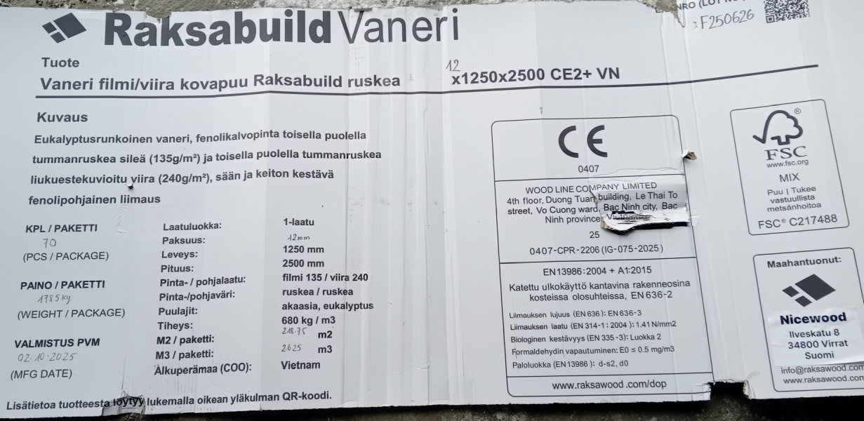 Säänkestävä filmipintainen vaneri, I-laatu